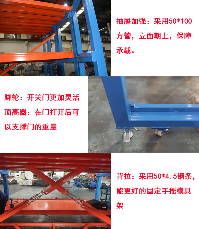 手搖模具架特點:承重大,操作輕便,抽拉靈活。每層可定制3-10噸